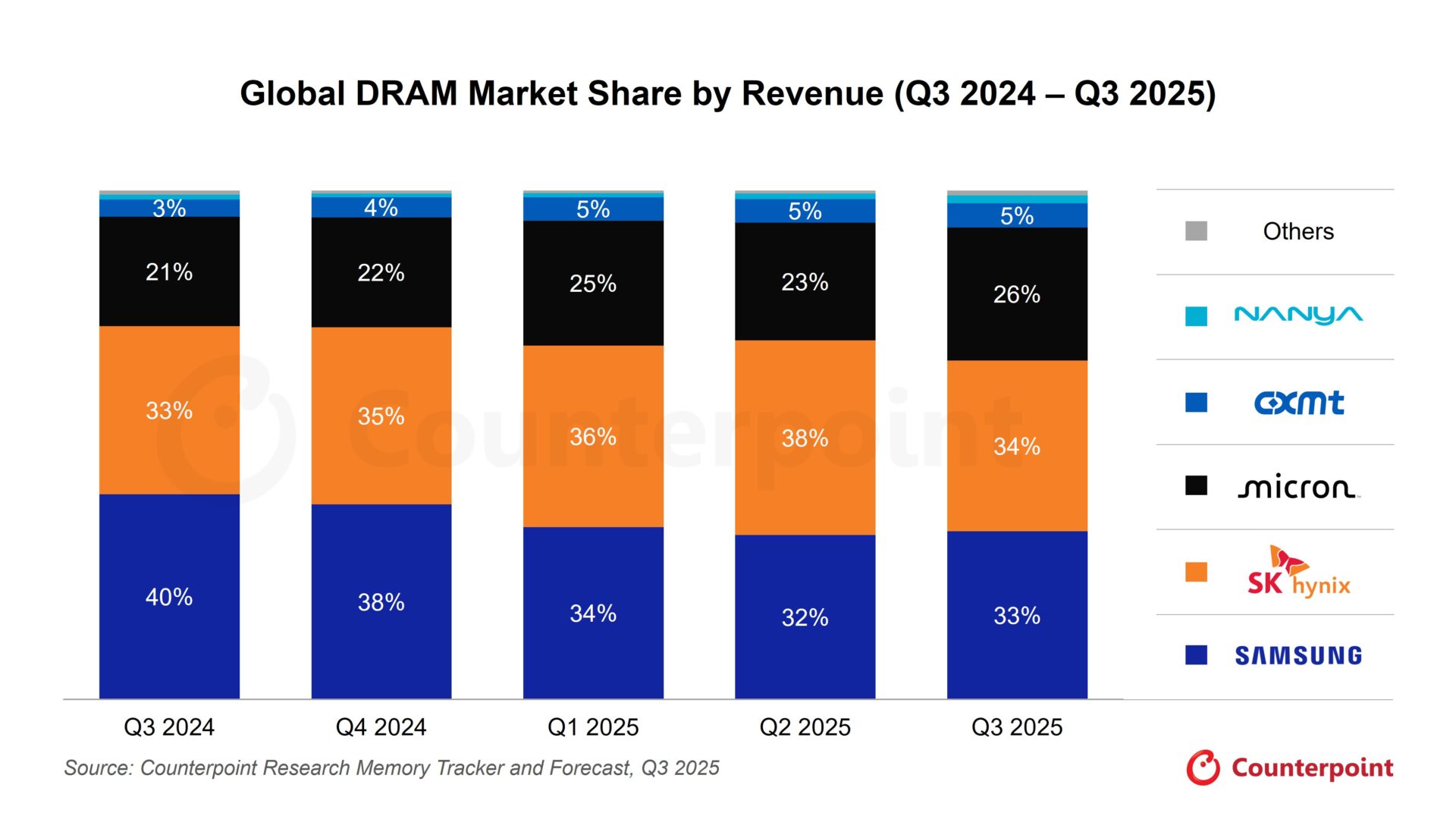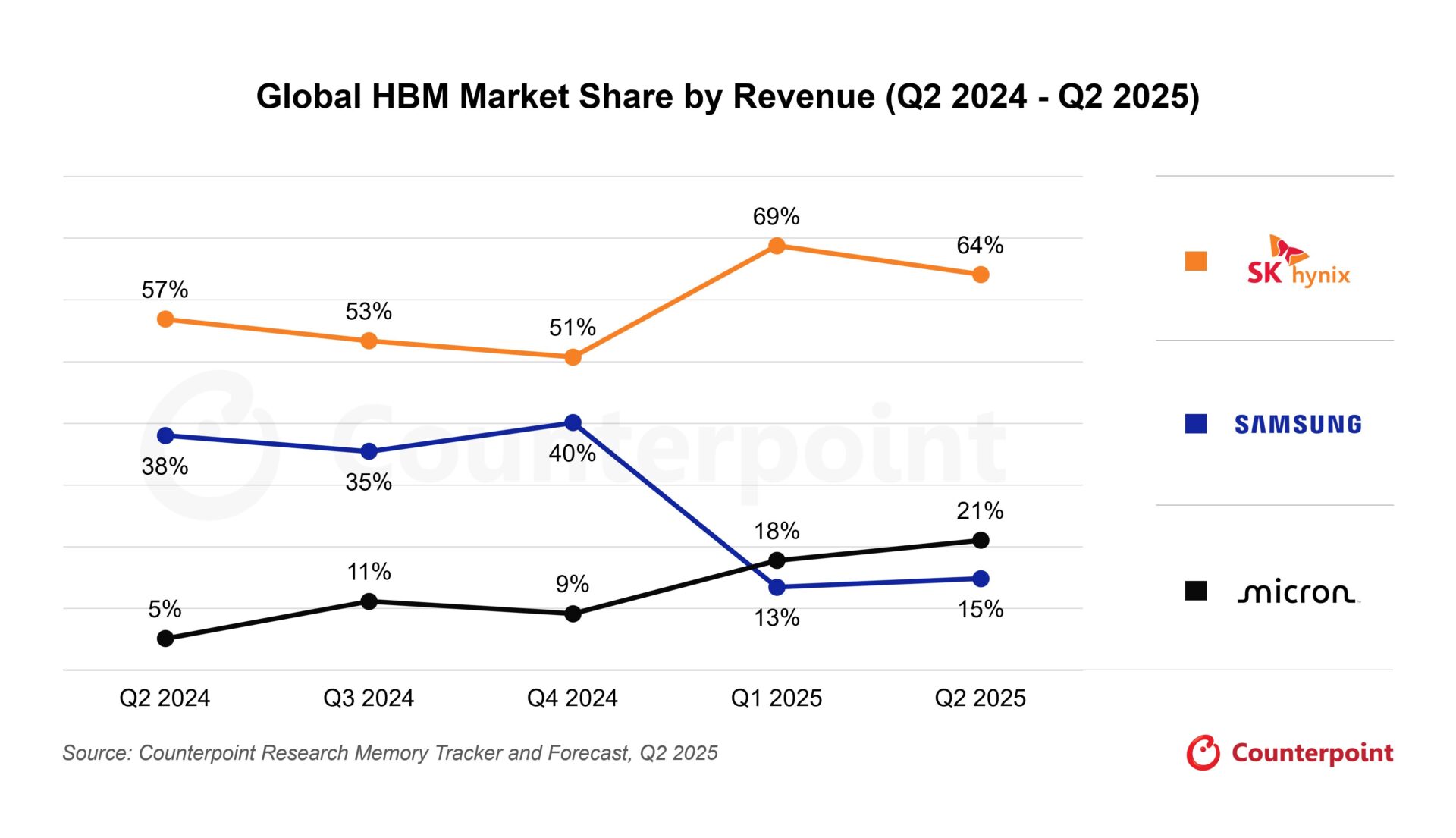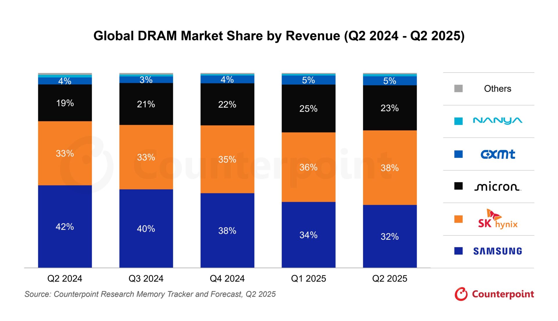 출처: 카운터포인트리서치 메모리 시장 트래커 및 전망, 2025년 2분기