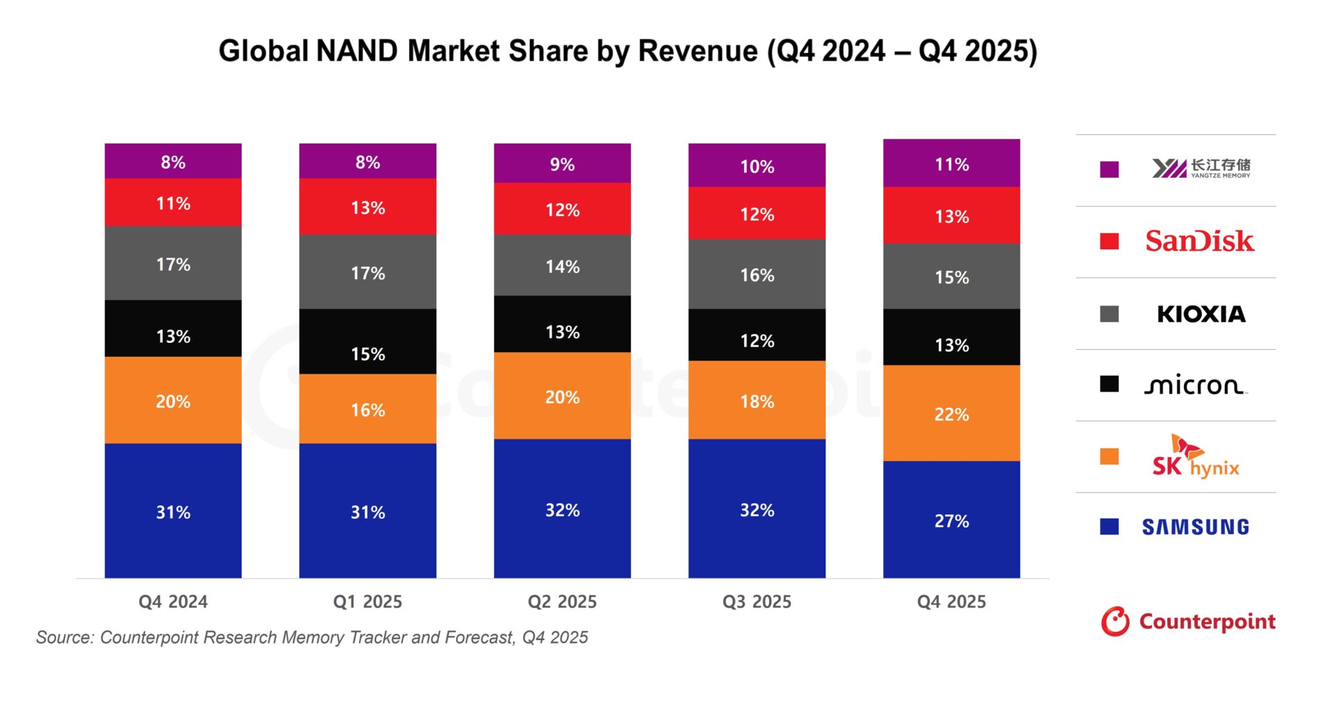 출처: 카운터포인트리서치 메모리 시장 트래커 및 전망, 2025년 4분기