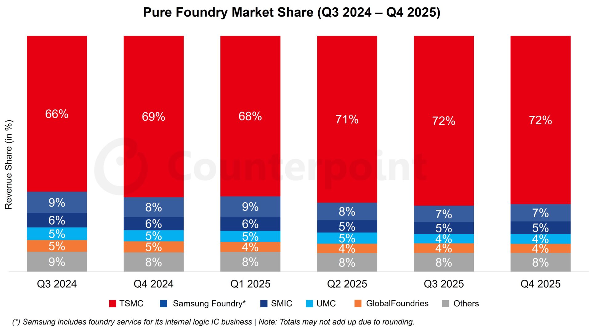 | Samsung Foundry* | 9% | 8% | 9% | 8% | 7% | 7% |